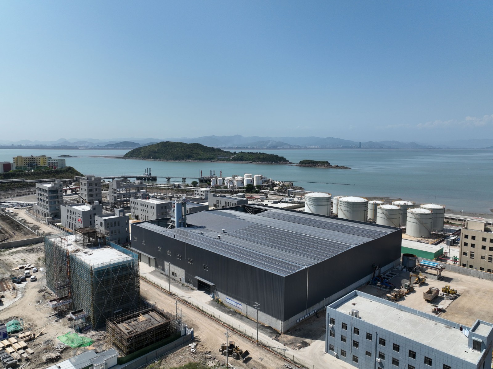 本次施工的浙江開程新材料有限公司年產(chǎn)100萬噸封閉式環(huán)保型瀝青混凝土攪拌站鋼結(jié)構(gòu)工程位于溫州市洞頭區(qū)小門島東嶼村B-02AD塊。鋼結(jié)構(gòu)平面尺寸為97m×87.6m,面積約8500㎡,為單層三連跨結(jié)構(gòu),跨度分別為A-C軸21.0m、C-F 軸41.8mF-H軸23.18m。該車間的鋼柱采用焊接H型鋼截面,鋼梁采用焊接變截面H型鋼截面,鋼柱柱頂標(biāo)高為16m,女兒墻頂標(biāo)高為17.5m。梁、柱等主要構(gòu)件(含附屬構(gòu)件)采用Q355B鋼,其余次要構(gòu)件(含附屬構(gòu)件)采用Q235B鋼。